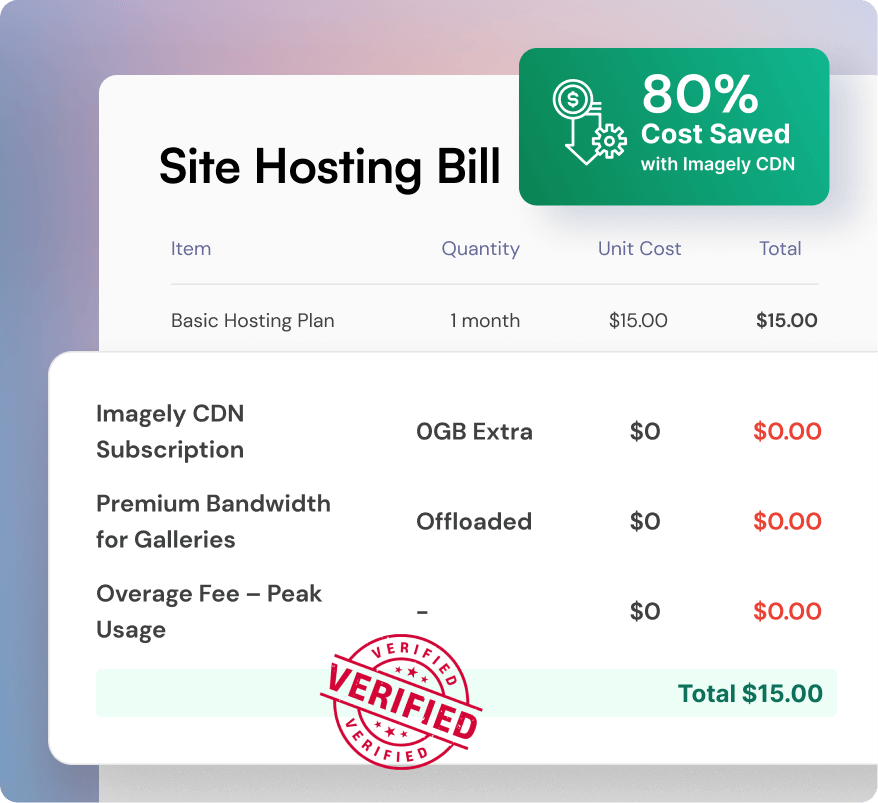 High-resolution photo galleries can quickly drive up bandwidth and performance costs on your web host. Imagely CDN offloads image delivery to our global network, so your hosting provider handles far less traffic — helping you avoid unexpected overage fees, throttling, and forced plan upgrades.